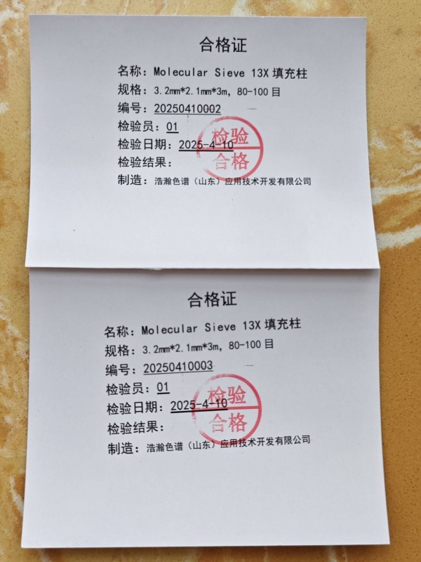 每一根色譜柱經(jīng)嚴(yán)格測(cè)試